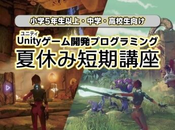 「ゲーム」を題材に、形にするプログラミングコースです。Minecraft(マイクラ)、スクラッチ、Unityを使用します。自分のペースでプログラミングの基礎からゲーム制作に必要な企画・構成・技術等の総合力を学び、有名ゲーム開発環境での2D・3Dゲーム制作ができることを目指します。